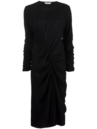 Long-sleeve Gathered-detail Dress In 1051 Black