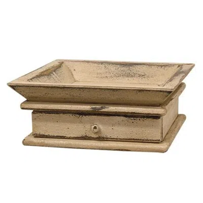 Aged Tray W/drawer White In Brown