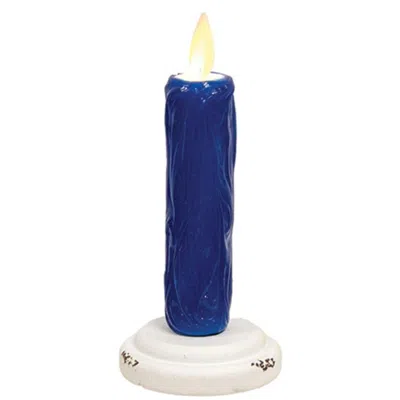 Silicone Dipped Midnight Blue Taper On Distressed White Wood Base