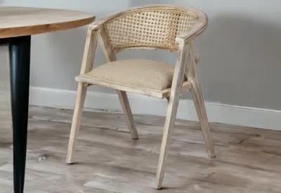 Beige And Gray Upholstered Linen Curved Back Dining Arm Chair