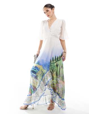 Flutter Sleeve Maxi Wrap Dress In Multi