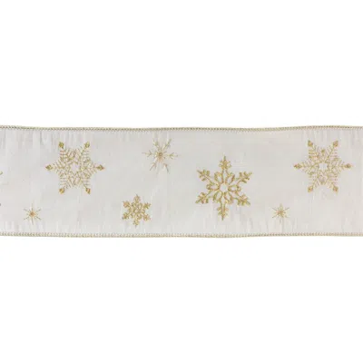 4" X 10 Yds. Ribbon (set Of 2) Wired Cotton In White