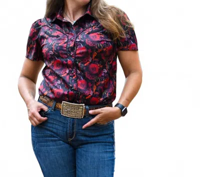 Midnight Rose Short Sleeved Pearl Snap Shirt In Red In Purple