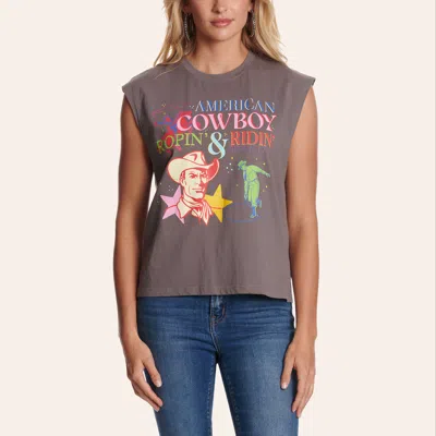 Women's Gray American Cowboy Graphic Top In Black