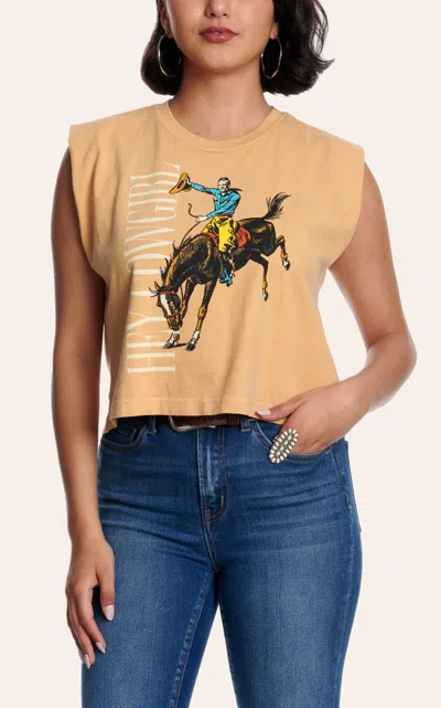 Women's Mustard Hey Cowgirl Graphic Cropped Top In Gold