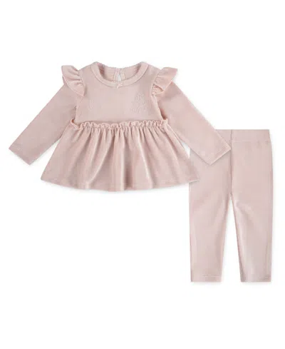 Baby Girls 2-piece Long-sleeve Top And Pants Set In Neutral