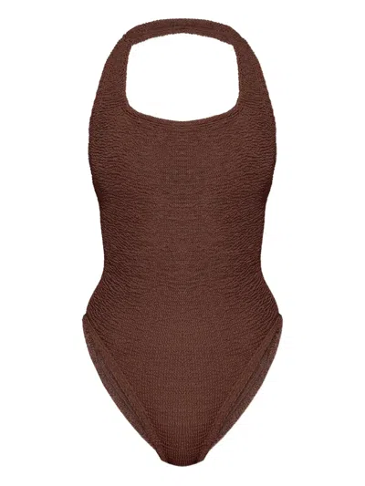 One-piece Square Neck Swims In Brown