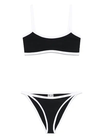 Crinkle Texture Ring Detail Scoop Neck High-leg Cut In Black