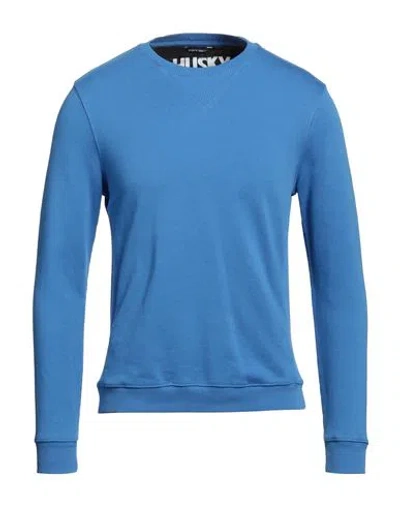 Man Sweatshirt Azure Size 40 Cotton In Blue