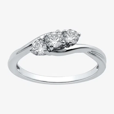 (h-i / I1) Womens 1/2 Ct. T.w. Lab Grown White Diamond Sterling Silver Round 3-stone Engagement Ring