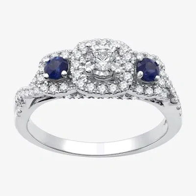 (h-i / I1) Womens 1/3 Ct. T.w. Lab Grown White Diamond Sterling Silver Side Stone Engagement Ring