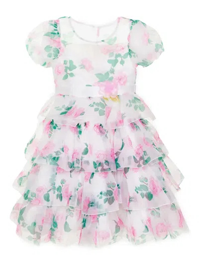 Kids' Floral-print Rhinestone-embellished Dress In White