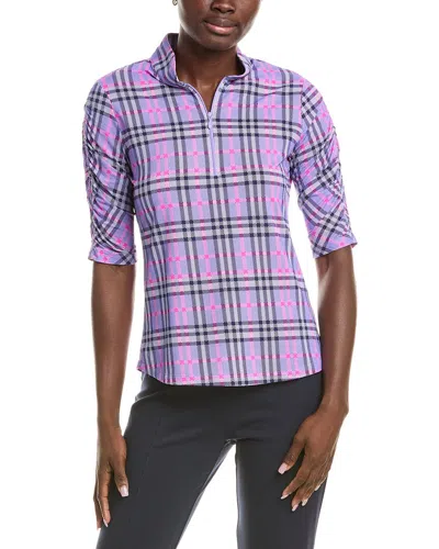 Zip Mock Neck Solid Top In Seafoam In Blue