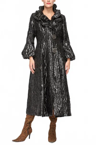 Metallic Double Wire Ruffle Collar Long Blouson Sleeve Jacket In Black