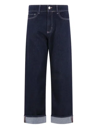 Debby Blue Jeans With Wide Leg And Logo Patch On The Rear In Denim Woman