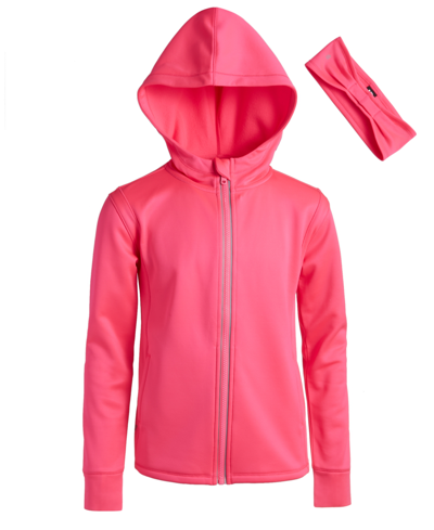 Big Girls Solid Brush-back Long-sleeve Jacket & Headband, Created For Macy's In Molten Pink