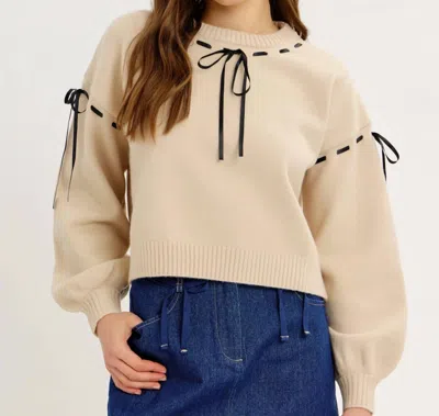 Lula Ribbon Crewneck Sweater In Beige In Neutral
