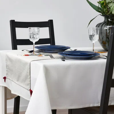 Mävinn Table Runner, White Red/tassel, 14x51 "