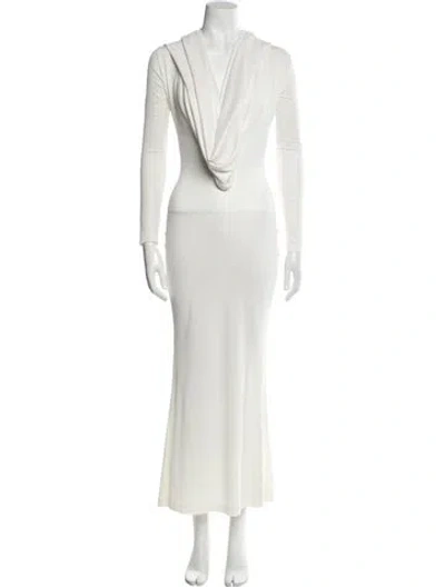 Pre-owned V-neck Long Dress In White