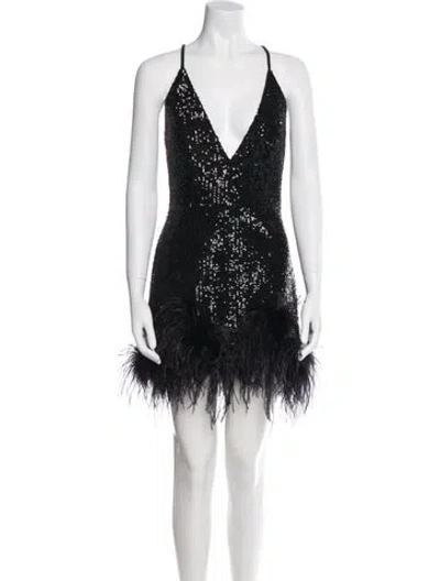 Pre-owned V-neck Mini Dress In Black