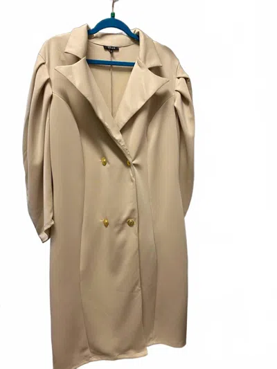 Women Puff Sleeve Wrap Dress In Beige In Neutral