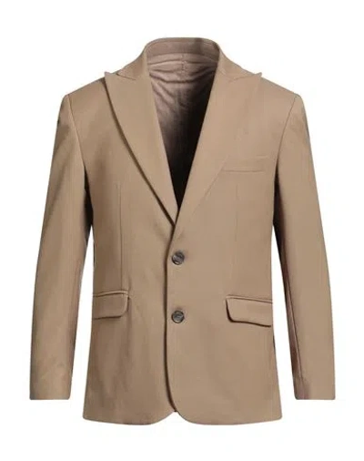 Man Blazer Camel Size 38 Polyester, Viscose, Elastane In Neutral