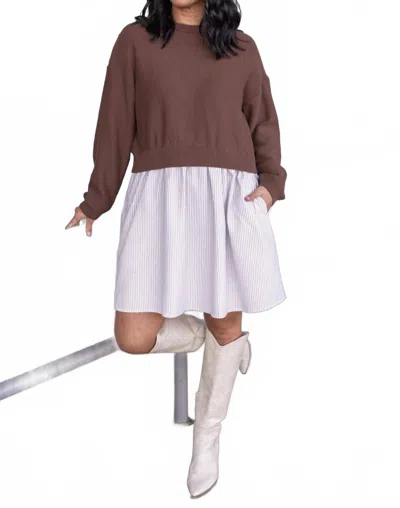 Cassidy Back Tie Two-fer Sweater Dress In Coffee & Cream In Brown
