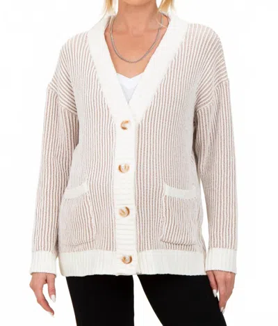 Contrast Edge Scoop Neck Rib Sweater Top In Cream In White