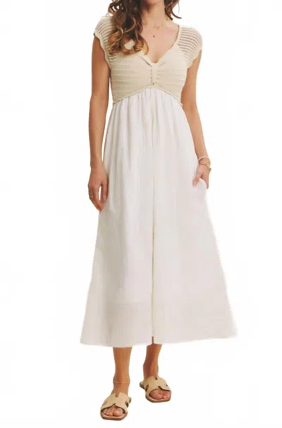 Effortless Mix Of Cozy And Polished Twofer Dress In Cream/denim In Blue