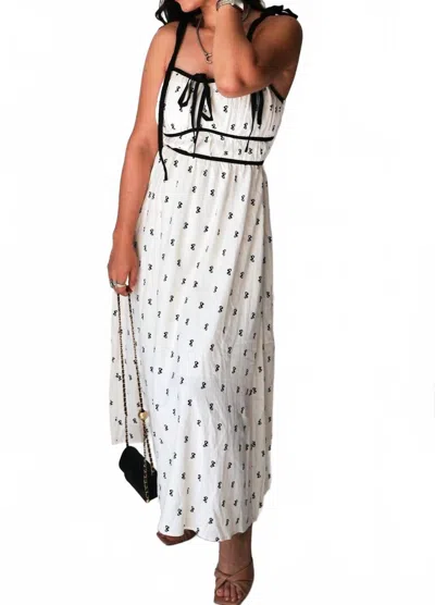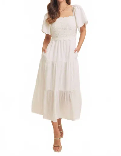 Crochet Embroider Flowers Midi Dress In Cream In White