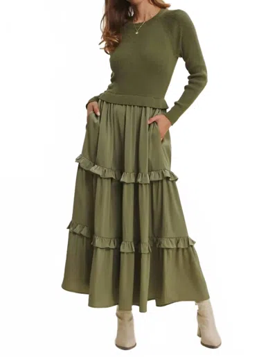 Floral Sweetheart Neck Midi Dress In Olive In Multi