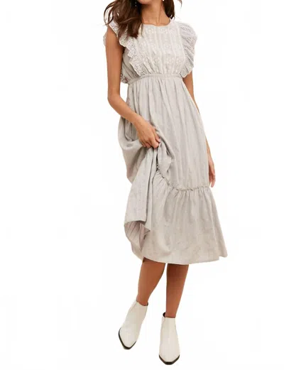 Eyelet Flutter Sleeve Embroidered Midi Dress In Dove Grey In Multi