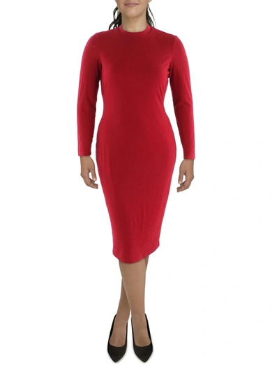 Womens Mock Neck Midi Shift Dress In Red