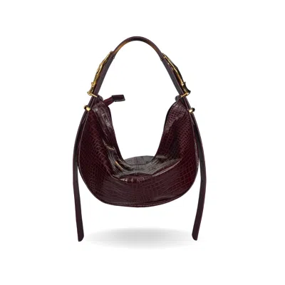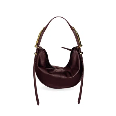 Women's Brown / Red Hobo Adjustable Hand Shaped Leather Bag Mini Black Cherry Two Hands Smooth In Multi