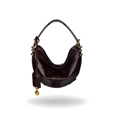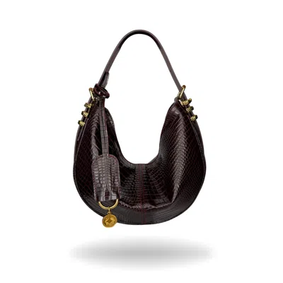 Women's Brown / Red Hobo Adjustable Hand Shaped Leather Bag Maxi Black Cherry Smooth In Multi