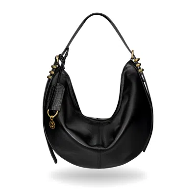Women's Hobo Adjustable Hand Shaped Leather Bag Midi Black Smooth