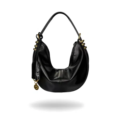 Women's Hobo Adjustable Hand Shaped Leather Bag Midi Studded Black