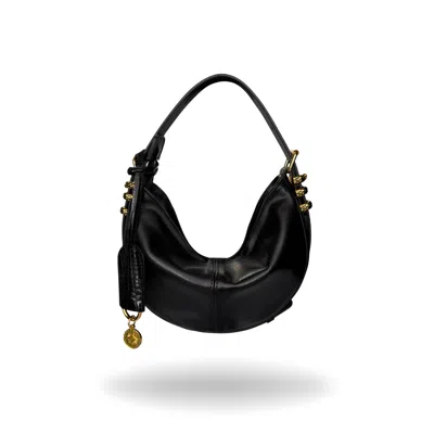 Women's Hobo Adjustable Hand Shaped Leather Bag Mini Studded Black