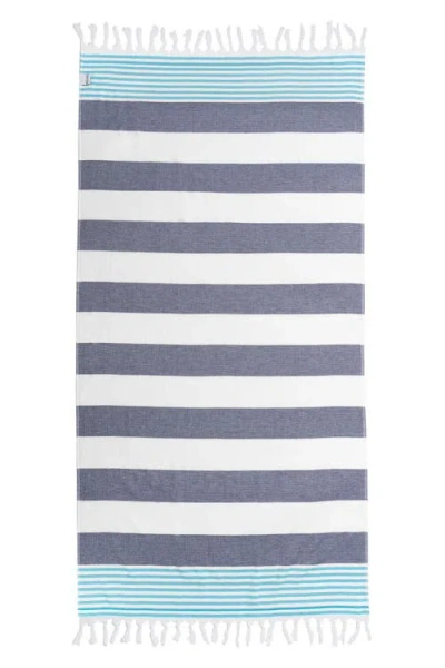 Sauna Stripe Organic Terry Cloth Lined Turkish Towel In Blue