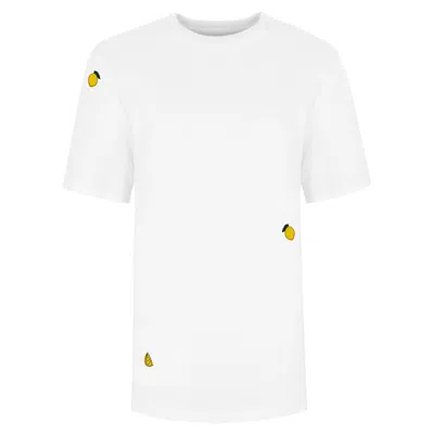 Women's White Lemon Embroidered Organic Cotton T-shirt