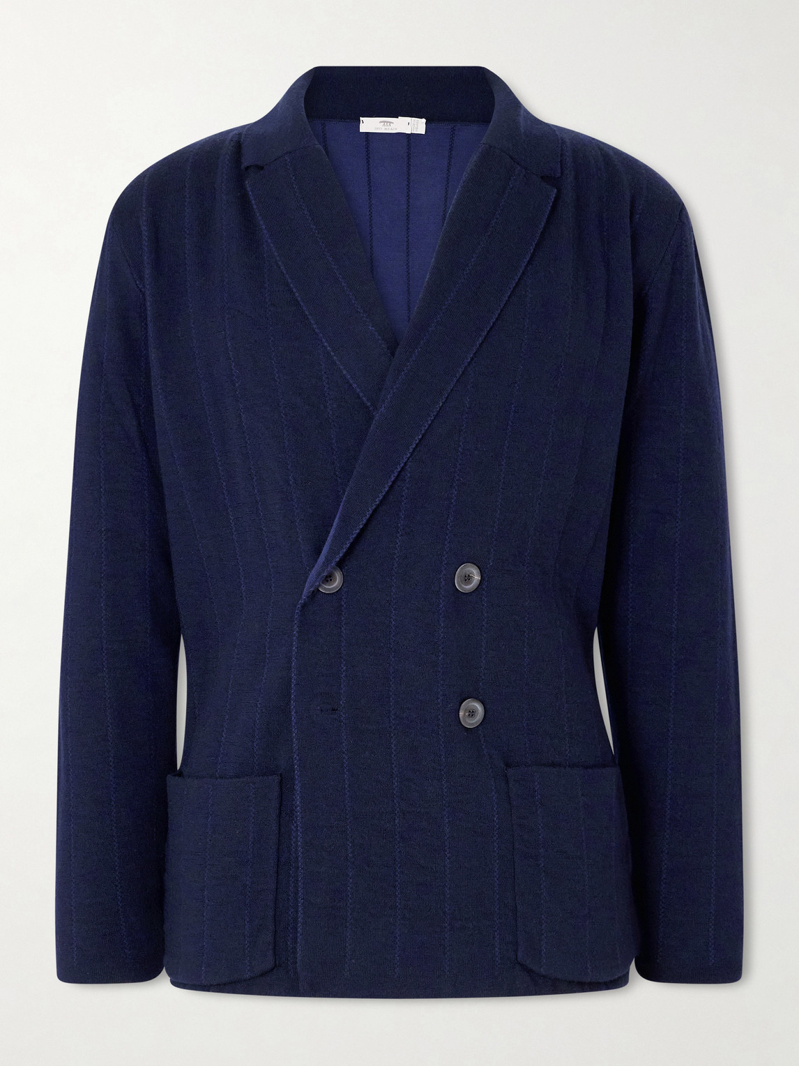 Double-breasted Striped Wool, Cashmere And Cotton-blend Blazer In Blue