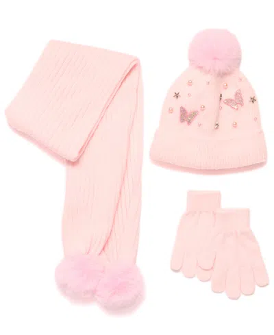 Kids' Big Girls 3-piece Hat, Gloves, And Scarf Set In Pink