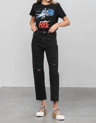 Dani Crop Raw Hem High Rise Straight Jeans In Black