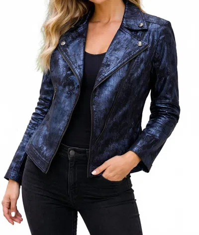 Moto Jacket In Blue Dusk Metallic Embossed In Multi