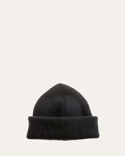 Men's Cashmere Rib Fold-over Brim Beanie Hat In Black