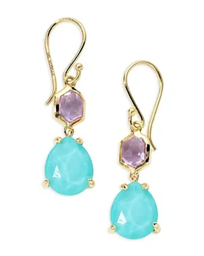 18k Yellow Gold Rock Candy Amethyst & Turquoise Doublet Drop Earrings In Multi/gold