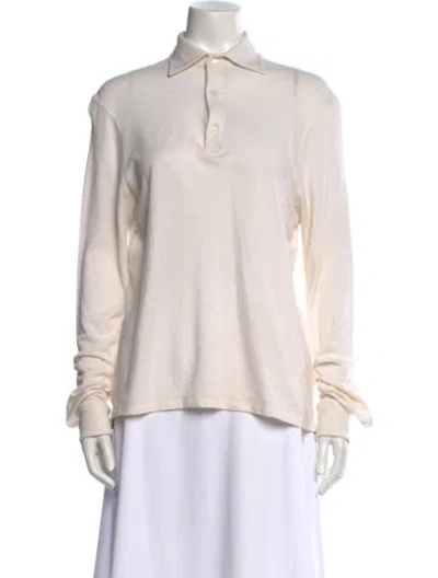 Pre-owned Linen Long Sleeve Button-up Top In White