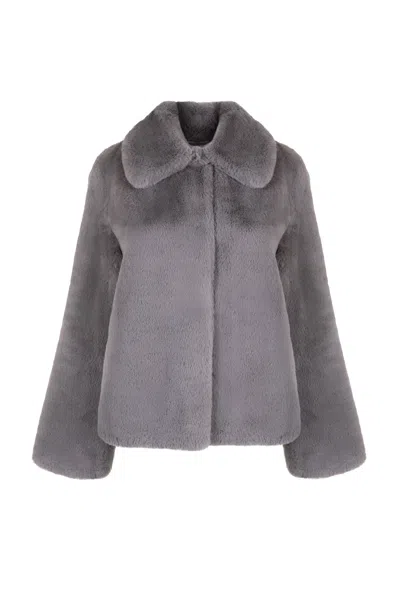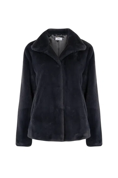 Women's Blue Ava Lighterweight Faux Fur Jacket Slate Grey
