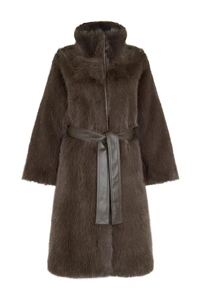 Women's Cleo Luxe Recycled Vegan Faux Fur Belted Coat Brown