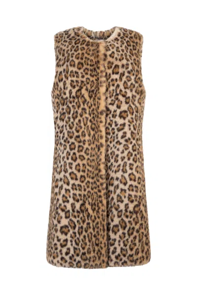 Women's Neutrals Lila Sleeveless Coat Vegan Luxe Leopard Faux Fur Neutral In Brown